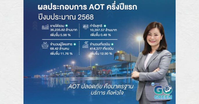 กรุงเทพ 15 พ.ค. – AOT แจงผลประกอบการงวด 6 เดือนแรก รายได้รวม 36,235.82 ล้านบาท เพิ่มขึ้นร้อยละ 5.98 นางสาวปวีณา จริยฐิติพงศ์ รองกรรมการผู้อำนวยการใหญ่ สายงานวิศวกรรมและการก่อสร้าง รักษาการผู้อำนวยการใหญ่ บริษัท ท่าอากาศยานไทย จํากัด (มหาชน) (AOT) กล่าวว่า ปริมาณการจราจรทางอากาศ ณ ท่าอากาศยานทั้ง 6 แห่งของ AOT ได้แก่ ท่าอากาศยานสุวรรณภูมิ (ทสภ.) ท่าอากาศยานดอนเมือง (ทดม.) ท่าอากาศยานเชียงใหม่ (ทชม.) ท่าอากาศยานแม่ฟ้าหลวง เชียงราย (ทชร.) ท่าอากาศยานภูเก็ต (ทภก.) และท่าอากาศยานหาดใหญ่ (ทหญ.) ใน 6 เดือนแรกของปีงบประมาณ 2568 (เดือนตุลาคม 2567 ถึงเดือนมีนาคม 2568) มีจำนวนเที่ยวบินรวม 414,377 เที่ยวบิน […]