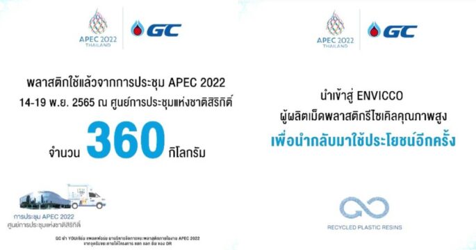 GC นำ YOUเทิร์น แพลตฟอร์ม บริหารจัดการพลาสติกใช้แล้วจากการประชุม APEC 2022 รวม 360 กิโลกรัม ช่วยลดปริมาณการปล่อยก๊าซเรือนกระจกได้ 835.20 กิโลกรัมคาร์บอนไดออกไซด์