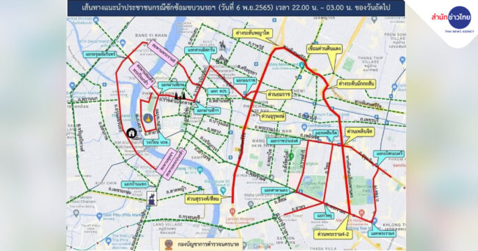 คืนนี้ (6 พ.ย.) ปิดการจราจรถนนและทางด่วนหลายสายในกรุงเทพฯ เพื่อซักซ้อมการนำขบวนรถผู้นำที่จะเข้าร่วมการประชุมเอเปค 2022 ในอีก 2 สัปดาห์ข้างหน้า ตำรวจจราจรขอผู้ใช้รถหลีกเลี่ยงเส้นทางทั้งหมด เพื่อความสะดวกในการเดินทาง