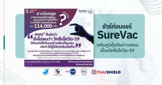 17 มิถุนายน 2564ตรวจสอบข้อเท็จจริงโดย: Newtral (สเปน)แปลและเรียบเรียงบทความโดย: พีรพล อนุตรโสตถิ์, อดิศร สุขสมอรรถ ประเภทข่าวปลอม: ทำให้เข้าใจผิด บทสรุป: เป็นรายงานอาการไม่พึงประสงค์จากผู้รับวัคซีนที่ยังไม่ได้ตรวจสอบว่ามีสาเหตุจากวัคซีนหรือไม่ MHRA ย้ำว่า รายงานอาการไม่พึงประสงค์ไม่ใช่สิ่งชี้ชัดว่าวัคซีนไม่มีความปลอดภัย เนื่องจากการตรวจสอบพบว่าอาการข้างเคียงส่วนใหญ่ไม่ได้เกิดจากวัคซีนโดยตรง ข้อมูลที่ถูกแชร์: มีการแชร์ข้อมูลว่าชาวอังกฤษได้รายงานอาการข้างเคียงจากการใช้วัคซีนโควิด 19 ของบริษัท AstraZeneca กว่า 114,000 ครั้ง มีตั้งแต่อาการรุนแรงเช่น โรคระบบประสาท, โรคเกี่ยวกับดวงตา หรือแม้แต่รายงานผู้เสียชีวิต FACT CHECK: ตรวจสอบข้อเท็จจริง: สำนักงานกำกับดูแลด้านการแพทย์และสาธารณสุขของสหราชอาณาจักร (MHRA) ยืนยันผลการตรวจสอบว่า อาการข้างเคียงร้ายแรงที่กล่าวมา ไม่ได้เกิดจากวัคซีนโควิด 19 แต่อย่างใด อาการข้างเคียงที่ได้รับรายงานกว่า 114,000 ครั้ง นำมาจาก Yellow Card แพลตฟอร์มที่ทางการอังกฤษเปิดให้ประชาชนแจ้งอาการไม่พึงประสงค์หลังจากรับวัคซีนโควิด 19 โดยระหว่างวันที่ 4 มกราคมถึง 14 กุมภาพันธ์ มีผู้รายงานอาการไม่พึงประสงค์ทั้งสิ้น 114,625 ครั้ง […]