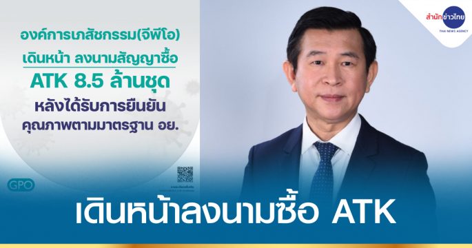 องค์การเภสัชกรรม (จีพีโอ) เดินหน้าลงนามสัญญาซื้อ ATK 8.5 ล้านชุด ต่อไป หลังได้รับการยืนยันคุณภาพตามมาตรฐาน อย. และตรวจสอบกระบวนการจัดซื้อแล้ว