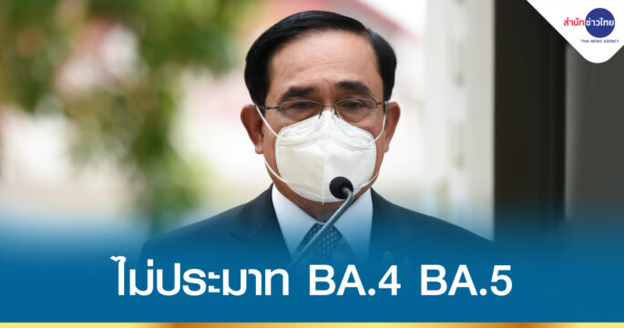 โฆษกรัฐบาล เผยนายกฯ ไม่ประมาท แม้รายงานสาธารณสุขพบ BA.4 BA.5 ไม่มีอาการรุนแรง มั่นใจสาธารณสุขไทยพร้อมรับมือ ย้ำการใส่หน้ากากอนามัยและฉีดวัคซีน เป็นหัวใจสำคัญในการป้องกันโควิด-19