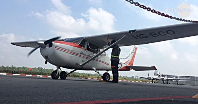 The Bangkok Aviation Center (BAC), a private aviation training center sent small planes to sprayed water over RamaII Road.
