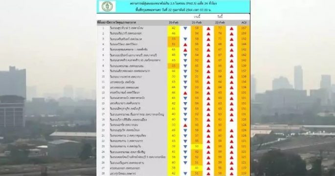 Unsafe smog levels were reported at 54 locations in the capital with the worst level recorded in Sai Mai district this morning.