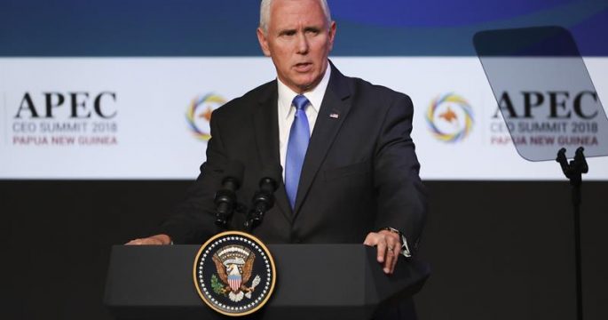 รอง ปธน.สหรัฐประกาศต่อที่ประชุมผู้นำเอเปกว่า สหรัฐจะไม่อ่อนข้อเรื่องข้อพิพาทการค้ากับจีน และอาจเพิ่มภาษีจีนเป็นสองเท่า จนกว่าจีนจะยอมทำตามข้อเรียกร้องของสหรัฐ