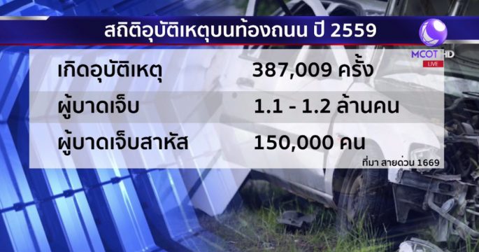 นักวิชาการด้านอุบัติเหตุบนท้องถนนคาดการณ์ว่าปีใหม่ 2561 อัตราการเกิดอุบัติเหตุบนท้องถนนจะไม่ลดน้อยลงกว่าปีที่ผ่านมา