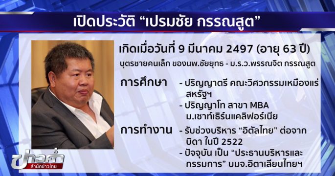 เปิดประวัติ “เปรมชัย กรรณสูต” ประธานบริหาร บมจ.อิตาเลียนไทย บุคคลที่มีชื่อเสียงในแวดวงธุรกิจรับเหมาก่อสร้างของไทย