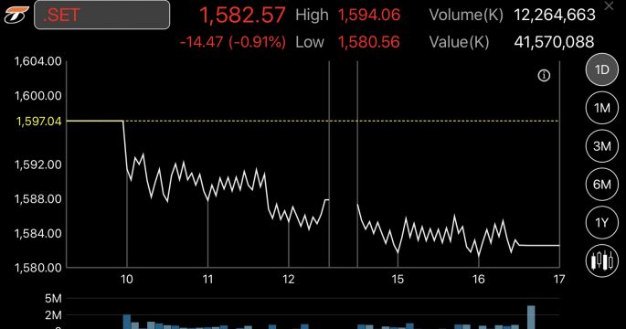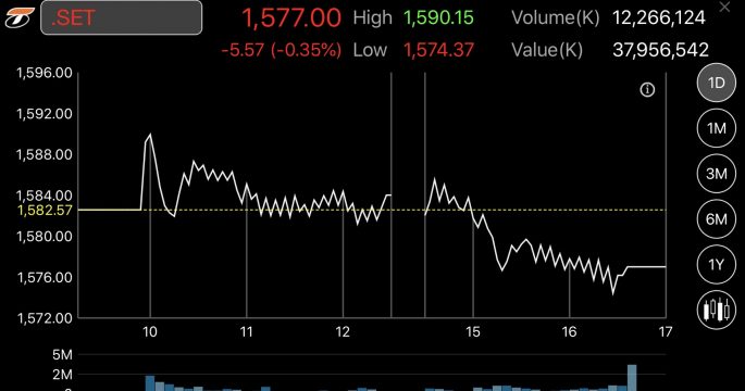 หุ้นไทยลบ 5.57 จุด ไร้ปัจจัยบวกหนุน กังวลโหวต Brexit คืนนี้
