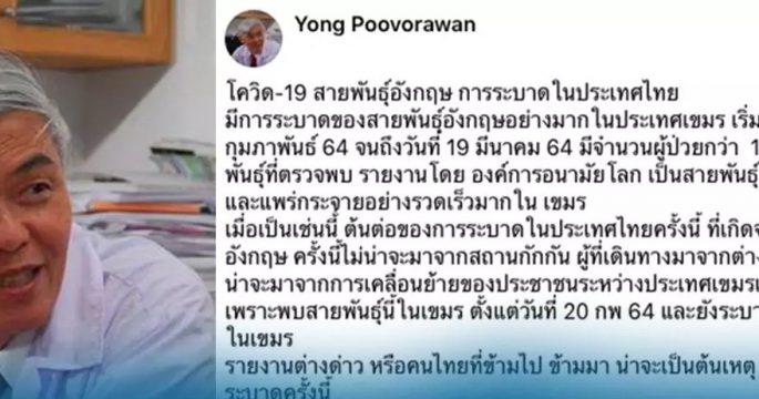 A renowned virologist assumed the British variant of COVID-19 in Thailand might come from Cambodia where the strain had spread.