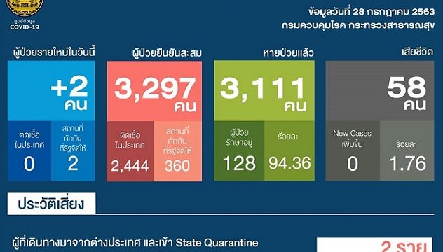 BANGKOK, July 28 (TNA) — The Center for COVID-19 Situation Administration reported that two quarantined soldiers who returned from a drill in Hawaii were found to have contracted the coronavirus disease 2019. The new patients raised the total of Thailand’s COVID-19 cases to 3,297, 3,111 of whom recovered and 128 remained in hospitals. The death […]