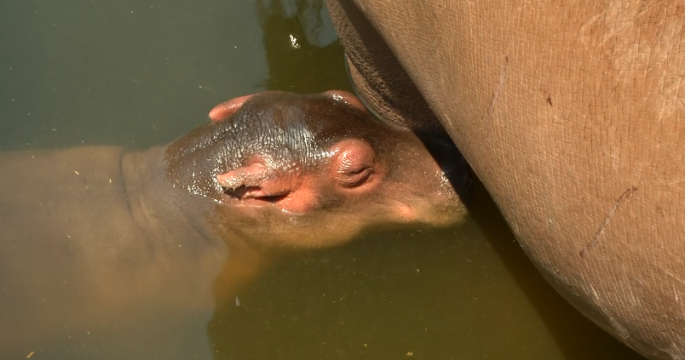 Chiang Mai zoo succeeded in breeding the hippopotamus with a newborn emerged floating near its mother yesterday.