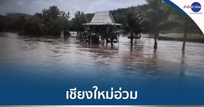 Forest runoff from Doi Inthanon Mountain triggered by heavy rain has inundated downstream communities, affecting over 100 houses and agricultural plots in Chiang Mai.