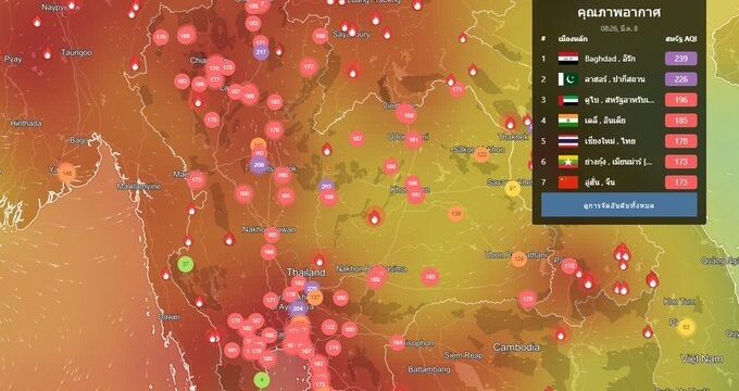 Chiang Mai was at one point the world’s worst polluted city Thursday with a USAQI of 174, according to a live ranking by IQAir.com