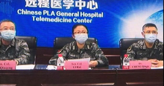Thai Defence Ministry officials and their Chinese counterparts exchange their experiences in prevention and mitigation of COVID-19 via video conference.