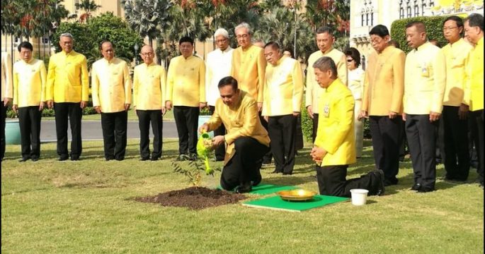 Prime Minister led cabinet ministers to plant a Yellow Star sapling, presented by His Majesty the King.