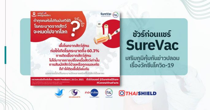 29 มิถุนายน 2564ตรวจสอบข้อเท็จจริงโดย: Science Feedback (สหรัฐอเมริกา)แปลและเรียบเรียงบทความโดย: พีรพล อนุตรโสตถิ์, อดิศร สุขสมอรรถ ประเภทข่าวปลอม: ทำให้เข้าใจผิด บทสรุป: เชื้อโรคจากสัตว์สู่คนก่อให้เกิดโรคระบาดถึง 60.3% แต่มีโรคระบาดอีกหลายชนิดที่ไม่มีสัตว์เป็นพาหะ การติดเชื้อจากสัตว์สู่คนไม่ได้มาจากการบริโภคเนื้อสัตว์เท่านั้น การสัมผัสสัตว์ป่วยหรือถูกแมลงกัดก็ทำให้ติดเชื้อได้เช่นกัน ข้อมูลที่ถูกแชร์: เป็นความเข้าใจผิดที่เผยแพร่ทาง Facebook ของ Moby ศิลปินแนวอิเล็กทรอนิก มิวสิคและนักเรียกร้องสิทธิสัตว์ชาวอเมริกัน โดยอ้างว่า ถ้าคนทั่วโลกหันมาเป็นมังสวิรัติ โรคระบาดจะหมดไปจากโลก เพราะโรคระบาดทั้งหมดมาจากการติดเชื้อจากสัตว์สู่คน FACT CHECK: ตรวจสอบข้อเท็จจริง: แม้ว่าสาเหตุของโรคระบาดส่วนใหญ่จะมาจากเชื้อโรคจากสัตว์สู่คน (60.3%) เช่นเดียวกับการอุบัติของโควิด 19 แต่ยังมีโรคระบาดอีกหลายชนิดที่ไม่ได้มีสัตว์เป็นพาหะ อหิวาตกโรค ซึ่งเกิดจากการดื่มน้ำปนเปื้อนแบคทีเรีย และนำไปสู่การแพร่ระบาดครั้งใหญ่ถึง 7 ครั้งระหว่างปี 1817 ถึงปัจจุบัน โดยองค์การอนามัยโลก (WHO) ยืนยันว่าเชื้ออหิวาตกโรคไม่ได้มาจากสัตว์ การกินเนื้อสัตว์ไม่ใช่ช่องทางเดียวที่นำไปสู่การติดเชื้อโรคจากสัตว์สู่คน (zoonotic disease) โอกาสติดเชื้อยังรวมถึงการใกล้ชิดกับสัตว์ป่วยหรือการถูกแมลงกัดต่อย ไวรัสเฮนดรา ซึ่งก่อให้เกิดอาการทางระบบหายใจและสมองอักเสบ มีต้นเหตุการระบาดจากไวรัสที่อยู่ในตัวค้างคาวกินผลไม้ ที่มีสถานะเป็นสัตว์รังโรค […]