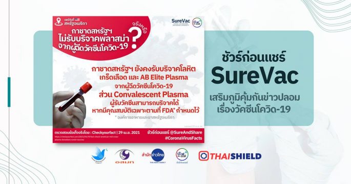 ชัวร์ก่อนแชร์: กาชาดสหรัฐฯ ไม่รับบริจาคพลาสม่าจากผู้ฉีดวัคซีนโควิด 19 จริงหรือ?
