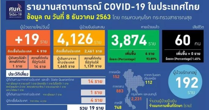 Thailand recorded 19 new cases of the coronavirus disease 2019 (COVID-19) including four medical officials in Bangkok.