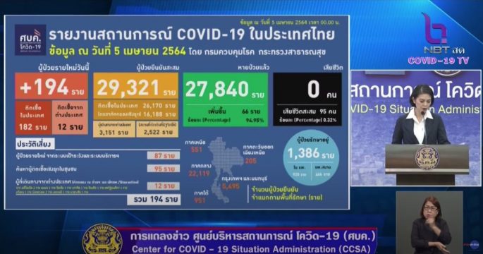 Thailand logged as many as 194 new COVID-19 cases over the past 24 hours including 94 people at the Narathiwat prison which also spread the disease to Sura Thani province.