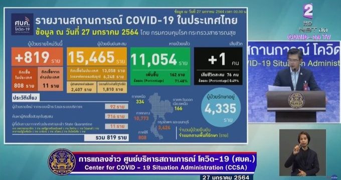 The Center for COVID-19 Situation Administration reported 819 new COVID-19 cases and one more death who was a bed-ridden man.