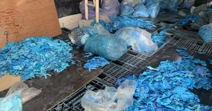 Staff of the Consumer Protection Police Division and the Food and Drug Administration raided a luxury house and seized a lot of dyed and unhygienic rubber gloves stored at the property.