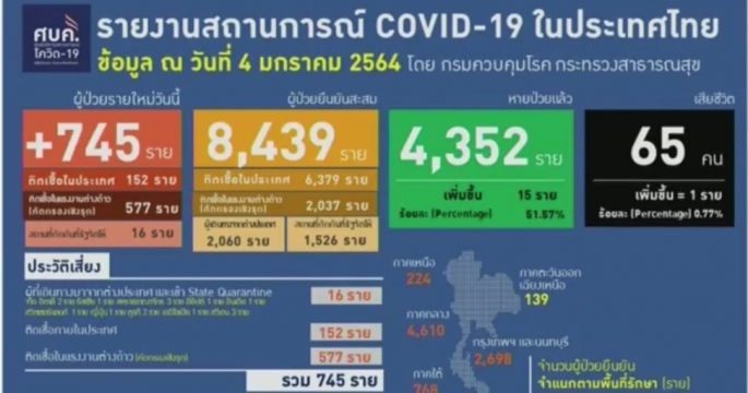 The Center for Covid-19 Situation Administration reported a record high of daily new coronavirus cases at 745, bringing the country’s total cases to 8,439.
