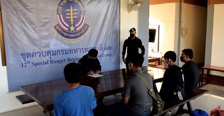 Security officials this morning arrested 12 Cambodian men for sneaking into Rong Kluea market in Aranyaprathet district to find jobs.