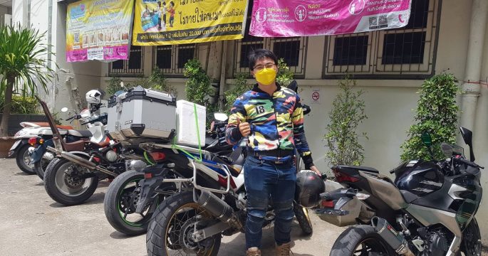 The Department of Disease Control deployed 60 volunteer motorcyclists to send medications and essentials to COVID-19 patients at their homes in Bangkok.