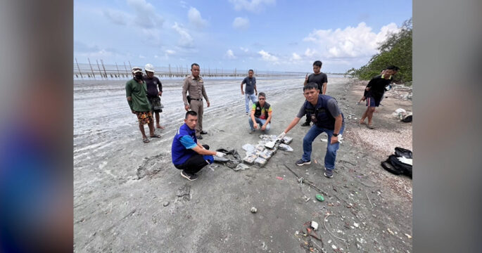 Crystal methamphetamine, also known as “ice” weighing over 60 kilograms washed ashore in multiple locations in the eastern province of Chanthaburi.
