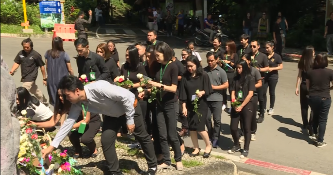 Thai mourners join a merit making ceremony marking one week after Chuang Chuang, the male giant panda on loan from China, died at Chiang Mai Zoo