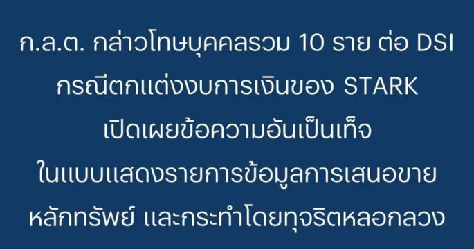 ก.ล.ต.กล่าวโทษบุคคลรวม 10 ราย ต่อ DSI กรณีตกแต่งงบการเงินของ STARK