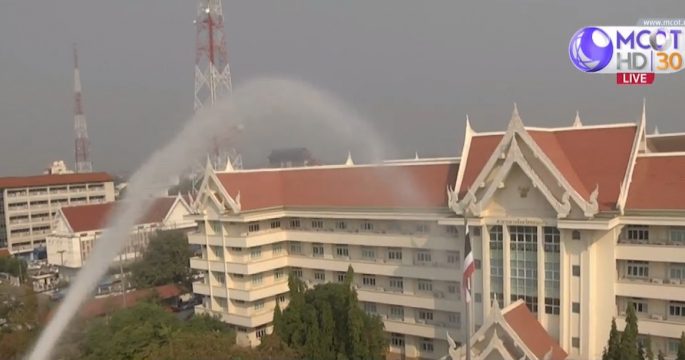Local authorities in Khon Kaen are spraying water in all 26 districts to reduce the PM2.5 particulate matter.
