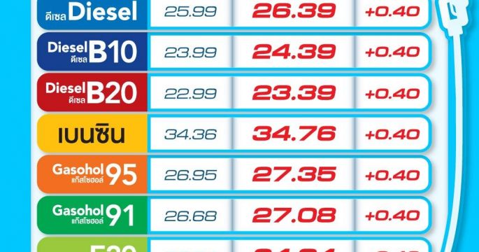 ปตท. – บางจากฯ ปรับราคาน้ำมันทุกชนิดเพิ่มขึ้น 60 สต. ยกเว้น E85 เพิ่ม 40 สต./ลิตร มีผล 5 มิ.ย.