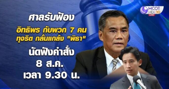 A court has accepted a complaint against the Election Commission, which accuses the EC chairman and six election commissioners of hurriedly forwarding the iTV shareholding case against Move Forward Party (MFP) leader Pita Limjaroenrat to the Constitution Court to discredit him before the first prime minister vote.