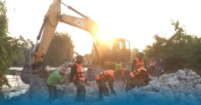 Two embankments that were ruptured for a distance of about 50 meters on both sides of the Chi River were partly repaired.