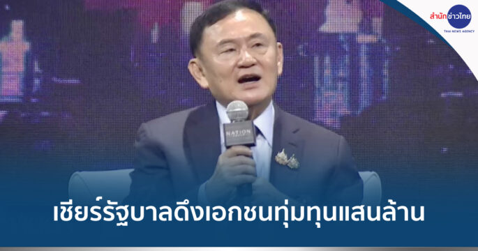 “ทักษิณ” เชียร์รัฐบาลดึงเอกชนทุ่มทุนแสนล้าน เดินหน้า Entertainment Complex สู้เพื่อนบ้าน แนะถมทะเลบางขุนเทียน-ปากน้ำ ผุดเมืองใหม่ ให้รถไฟ-รถไฟฟ้าวิ่งเท่านั้น กันน้ำท่วม กทม. ชี้รถไฟฟ้า 20 บาทตลอดสาย หาเสียงแล้วต้องทำให้ได้ พร้อมให้ดึงรถ EV พวงมาลัยขวา มาผลิตในไทย