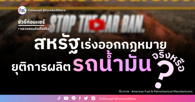 ชัวร์ก่อนแชร์: สหรัฐฯ เร่งออกกฎหมายยุติการผลิตรถน้ำมัน จริงหรือ?