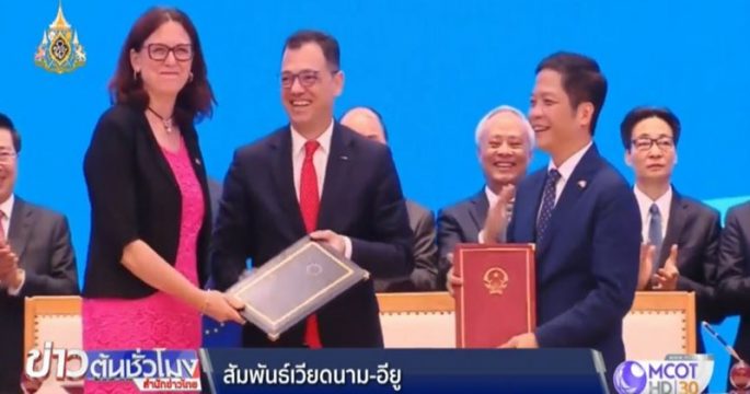 เวียดนามให้สัตยาบันข้อตกลงการค้าเสรีหรือเอฟทีเอ (FTA)กับสหภาพยุโรปหรืออียู (EU) แล้ว ซึ่งจะลดหรือขจัดภาษีเกือบทั้งหมดให้แก่การค้าสินค้าทั้งสองฝ่าย