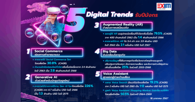 EXIM BANK แนะ 5 Digital Trends ผู้ประกอบการยุคใหม่ต้องปรับตัว รองรับปีมังกร คาด Social Commerce โลก พุ่งถึง 6.2 ล้านล้านดอลลาร์สหรัฐ