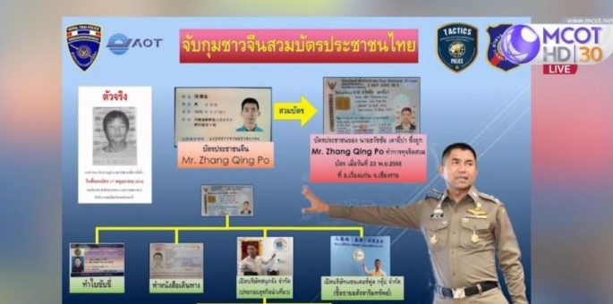 Chinese Man Arrested for Holding Fake Thai ID 13 March 2019 04:07 FacebookFacebookXTwitterLINELine 60 A Chinese man was arrested for holding a fake Thai ID card and illegally registering businesses.