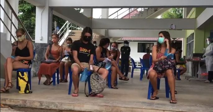 Foreign tourists show their appreciation for hospitality and assistance from local authorities and people of Thailand’s Koh Phi Phi after being stranded on the island in the Andaman Sea due to flight cancellations amid COVID-19 pandemic.