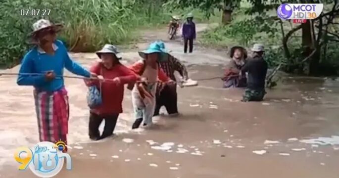 More than 50 villagers, collecting mushroom in the forest were trapped by a flash flood triggered by heavy rain in Chaiyaphum province.