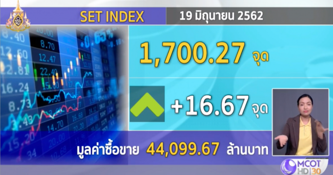 หุ้นไทยภาคเช้าพุ่งแตะ 1,700.27 จุด เพ่ิมขึ้น 16.67 จุด มูลค่าซื้อขาย 44,099.67 ล้านบาท