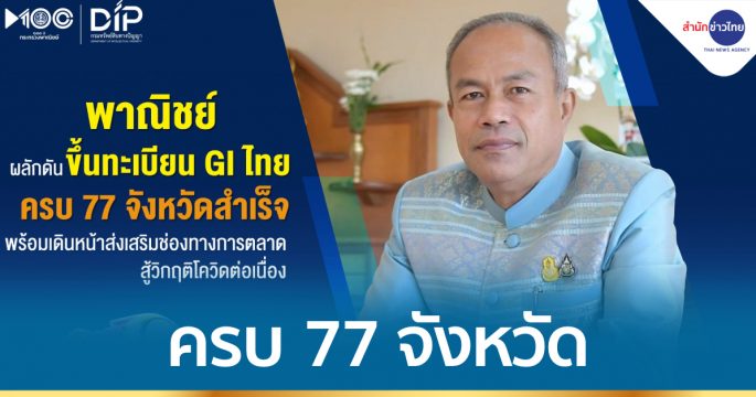 กระทรวงพาณิชย์ปลื้มผลักดันขึ้นทะเบียนสินค้า GI ไทย ได้ครบ 77 จังหวัดสำเร็จ เดินหน้าส่งเสริมช่องทางการตลาดสู้วิกฤติโควิดต่อเนื่อง