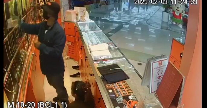SAMUT PRAKAN, Aug 15 (TNA) – Thai police are searching for a lone robber who, disguised in a delivery rider’s uniform, stole gold jewelry worth 8.6 million baht (about $265,000) from a shop in a Samut Prakan shopping mall yesterday evening. The suspect, wearing a full-face helmet and a rider’s jacket, reportedly made off with […]
