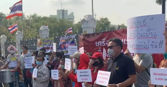 A group of workers rallied at Government House to demand the government hand out 5,000 baht to all workers during a period of three months.