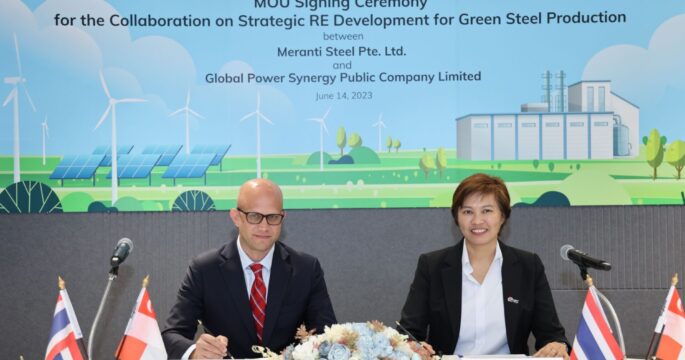 กรุงเทพฯ 14 มิ.ย- GPSC – Meranti ลงนามร่วมศึกษาพัฒนาโครงการพลังงานสะอาด ป้อนโรงงานผลิตเหล็ก คาดใช้ไฟฟ้า 150 เมกะวัตต์ มุ่งเน้นทั้งพลังงานแสงอาทิตย์ พลังงานลม และการใช้พลังงานไฮโดรเจน เพื่อเพิ่มประสิทธิภาพการผลิตเหล็กคุณภาพสูง มุ่งสู่การเป็นโรงเหล็กสีเขียวแห่งแรกในภูมิภาคเอเชียตะวันออกเฉียงใต้
