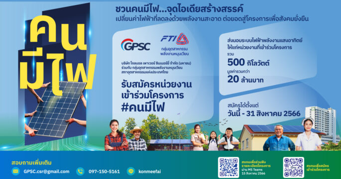 GPSC จับมือกลุ่มฯ พลังงานหมุนเวียน ส.อ.ท. ปั้นโครงการ “คนมีไฟ” ร่วมติดตั้งโซลาร์ 500 kW หนุนองค์กรไม่แสวงหากำไร-หน่วยงานรัฐ ลดค่าไฟสร้างสิ่งแวดล้อมยั่งยืน
