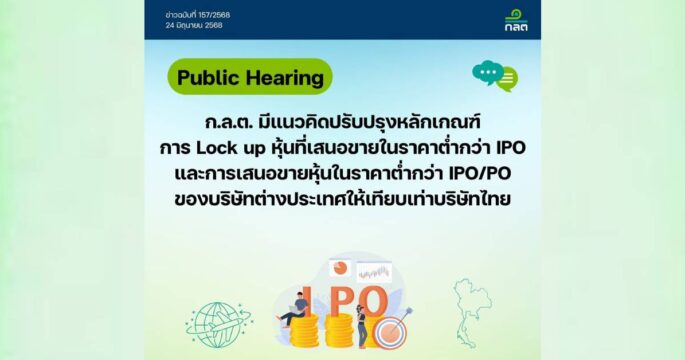 ก.ล.ต.เปิดรับฟังความเห็นปรับเกณฑ์ Lock up หุ้นเสนอขายต่ำกว่า IPO ถึง 24 ก.ค.68