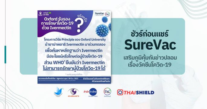30 มิถุนายน 2564 ตรวจสอบข้อเท็จจริง/เรียบเรียง โดย : ภริตพร สุธีพิเชฐภัณฑ์ บนสังคมออนไลน์มีการแชร์ข้อมูล จาก American Journal of Therapeutic ยา Ivermectin ช่วยลดการตายและหยุดการแพร่ระบาดของไวรัสโควิด-19 ได้ นั้น ศูนย์ชัวร์ก่อนแชร์ ตรวจสอบข้อมูลแล้ว พบว่า ข้อมูลมีความจริงบางส่วน แต่ยังไม่ควรแชร์ บทสรุป : จริงบางส่วน ยังไม่ควรแชร์ · งานวิจัยดังกล่าวทางการแพทย์เรียกว่า “การทบทวนอย่างเป็นระบบและการวิเคราะห์อภิมาน” หมายความว่าเป็นการนำงานวิจัยที่เกี่ยวข้องทั้งหมดที่ได้สืบค้นได้ นำมาทบทวนรวมกัน ซึ่งบางงานวิจัยก็มีคุณภาพดี บางงานวิจัยมีคุณภาพปานกลาง และบางงานวิจัยก็มีคุณภาพต่ำ · ไม่แนะนำให้ซื้อยาตัวนี้มาใช้ในการรักษาเอง ส่วนจะมีการใช้ยาตัวนี้ในอนาคตเพื่อรักษาโควิด-19 หรือไม่นั้น ขอให้ติดตามข้อมูลที่เป็นทางการจากกระทรวงสาธารณสุขต่อไป · ในประเทศไทย ไอเวอร์เมคติน เป็นยาที่ขึ้นทะเบียนเพื่อใช้สำหรับการฆ่าพยาธิ หากจะนำยาที่ขึ้นทะเบียนด้วยเหตุผลอย่างหนึ่ง […]
